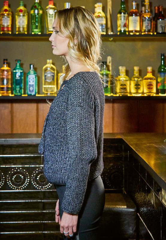 Der schimmernde Pullover hat eine Wickeloptik und fällt locker über die Taille. Mit einem Riegel wird der Ausschnitt in Form gehalten, gleichzeitig ist er ein schmückendes Detail. Gestrickt wird der Pulli in Einzelteilen im Halbpatent – das ist nicht kompliziert und in der Anleitung detailliert Reihe für Reihe erklärt. So kommt auch das Garn besonders schön zur Geltung - denn wir verstricken ein superweiches und leichtes Mouliné-Effekt-Garn mit sanftem Glanz und in raffinierten Farben - Ton in Ton mouliniert. Es läuft weit, mit geringem Verbrauch und lässt sich hervorragend verarbeiten. Durch die Baumwoo/Merino Mischung ist es besonders weich und hautverträglich. Zum Schluss werden die Nähte geschlossen und das Ausschnittband mit den Metallringen angebracht.