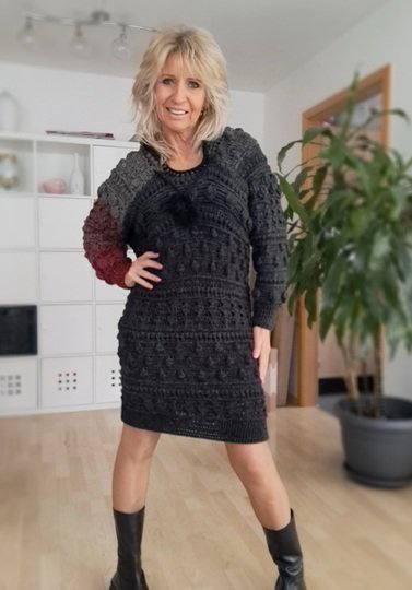 Dann häkelt Euch das Kleid mit etwas schmaleren Ärmel, das trotzdem locker aber nicht oversized sitzt.