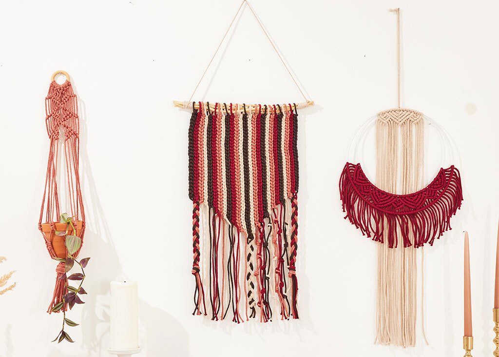 Wer kennt das noch von früher? Makramee ist wieder modern. Es gibt das neue Makramee Garn und die ersten Anleitungen sind in Zeitschriften zu finden.