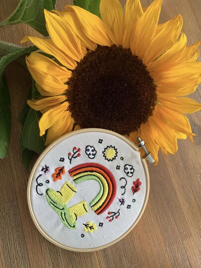 Stickgarn, ggf. Stickvlies, Stoff zum Besticken