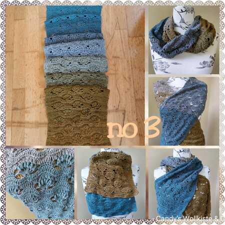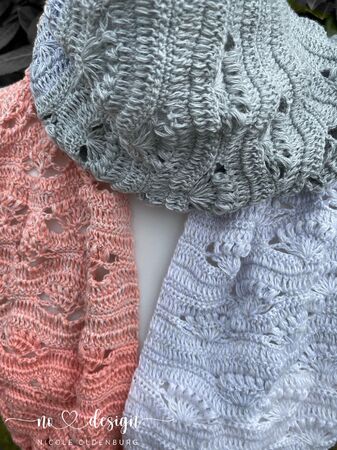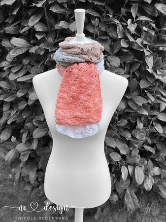 DIe Häkelanleitung no 3 ist eine Anleitung für einen tollen und lässigen Schal, der durch sein wiederkehrendes Muster nicht nur besticht, sondern locker und leicht weg gehäkelt werden kann. Durch die Wahl des Garn bestimmst du alleine, ob es z.B. dreifädig gehäkelt ein fluffiger Frühlings- oder Herbstschal wird - oder gar ein leichter Sommerschal. Nimmst du dickeres Garn wird er auch flink zu einem leichten Winterschal. Das besonders pfiffige an dem Häkelmuster ist, dass ab Mitte des Garns das Muster gespiegelt gehäkelt wird! Dadurch erhalten wir am Ende ein gleiches Muster wenn der Schal um den Hals gewickelt wird. Man hat nicht das Gefühl, dass eine Seite auf dem Kopf steht, sondern beide Seiten sehen identisch aus.