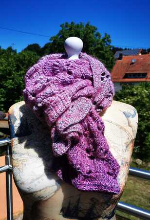 Die Anleitung selber enthält 15 Seiten inkl. einem allgemeinen Teil zum Schal, Verbräuche, eine detaillierte Häkelanleitung für alle Reihen, eine am PC erstellte Häkelschrift in 2 Farben und Fotos zur Verdeutlichung.