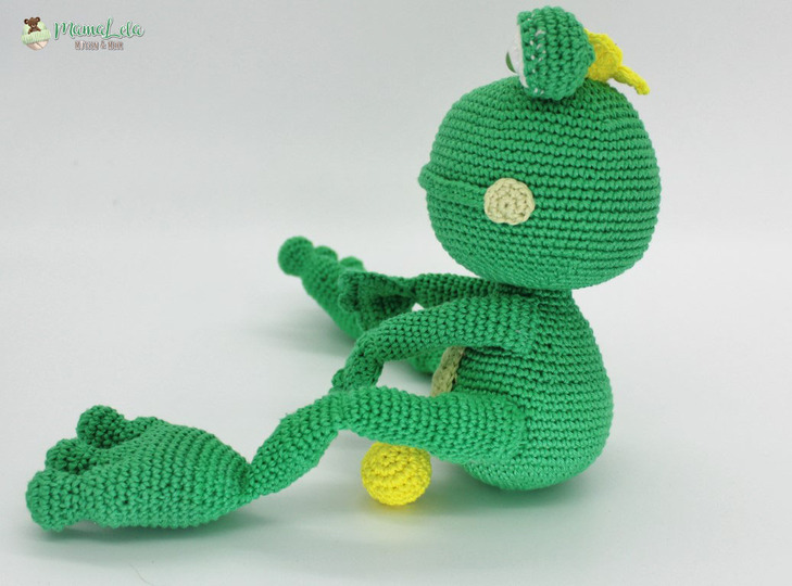 Anstelle der Catona Denim die Catona in Farbe 389 Apple Green und anstelle der schwarzen Sicherheitsaugen spezielle Froschaugen.