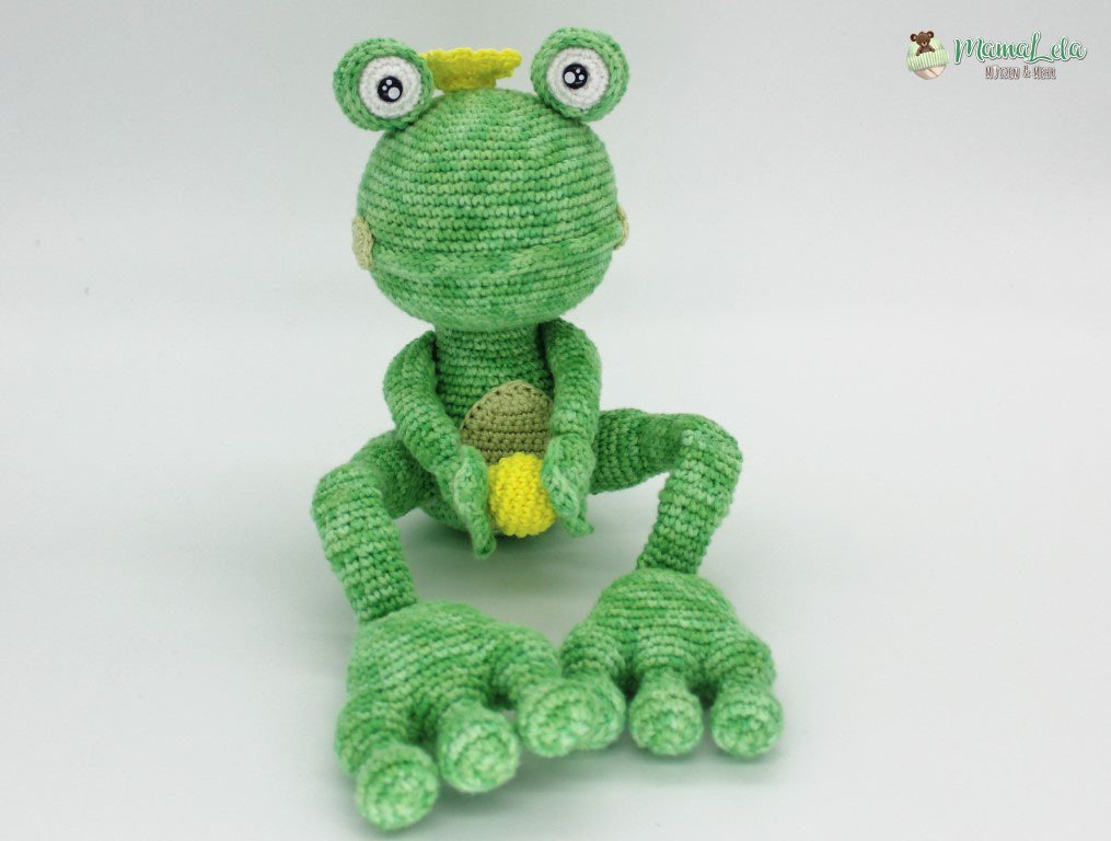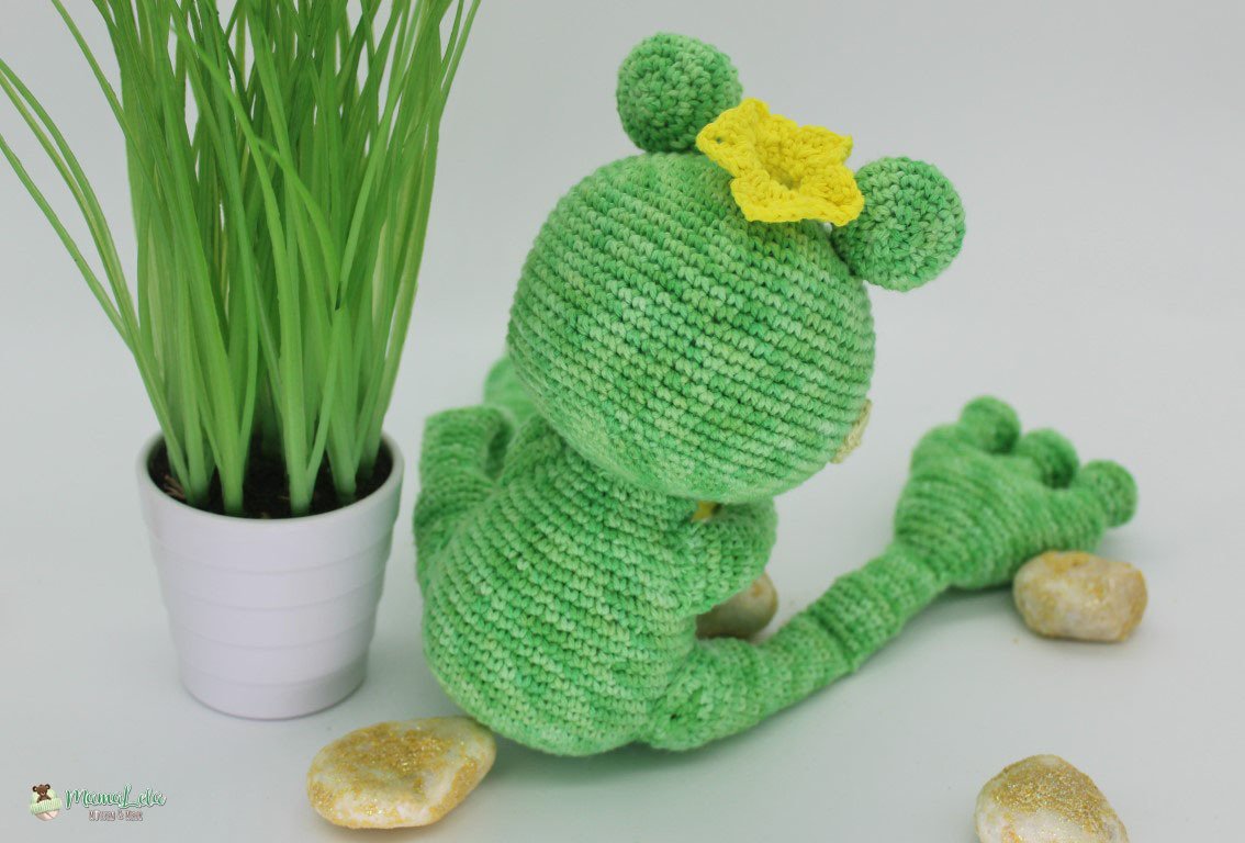 So habe ich es mir zur Aufgabe gemacht, eine ganze Reihe schnell gehäkelter Tiere anzubieten. Dieses hier ist nicht nur ein ideales Geschenk für die Kleinsten unter uns, sondern ein perfekter Dauerbegleiter in allen Lebenslagen. Ihr könnt dem Frosch beispielsweise eine Spieluhr in den Bauch legen oder Knisterfolie in die Füße einarbeiten. So ist es nicht nur ein Erlebnis zum Fühlen, sondern auch eines zum Hören.