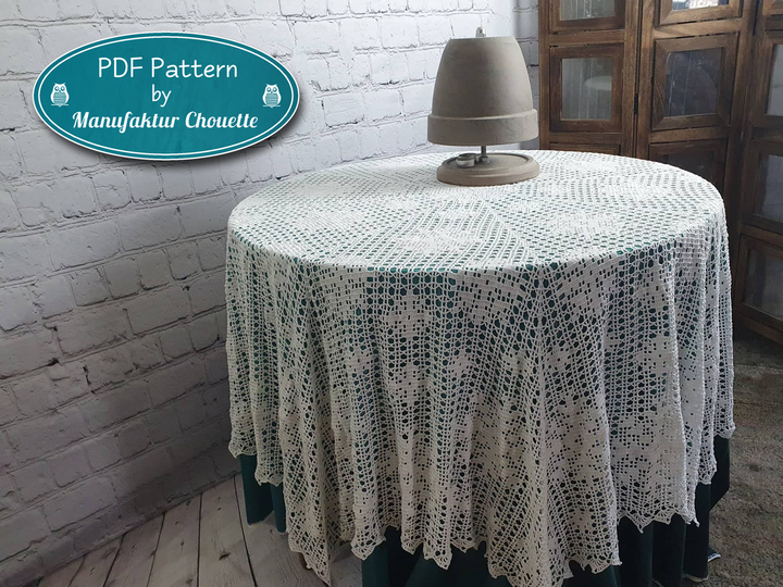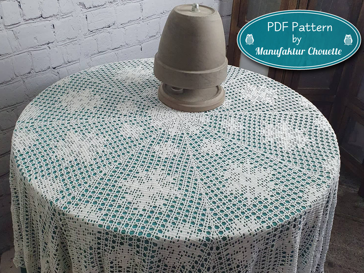 Mit dieser Anleitung kannst Du Dir die runde Tischdecke Schneefall selbst häkeln.