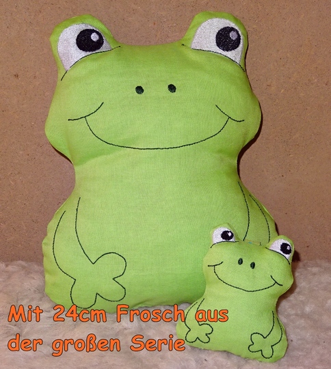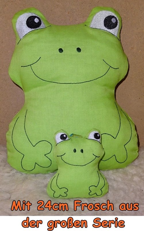 ACHTUNG: Es handelt sich hier nicht um fertige Frösche, sondern um Stickdateien für eine Stickmaschine. Um die Stickerei herzustellen wird also eine Stickmaschine benötigt!