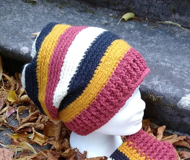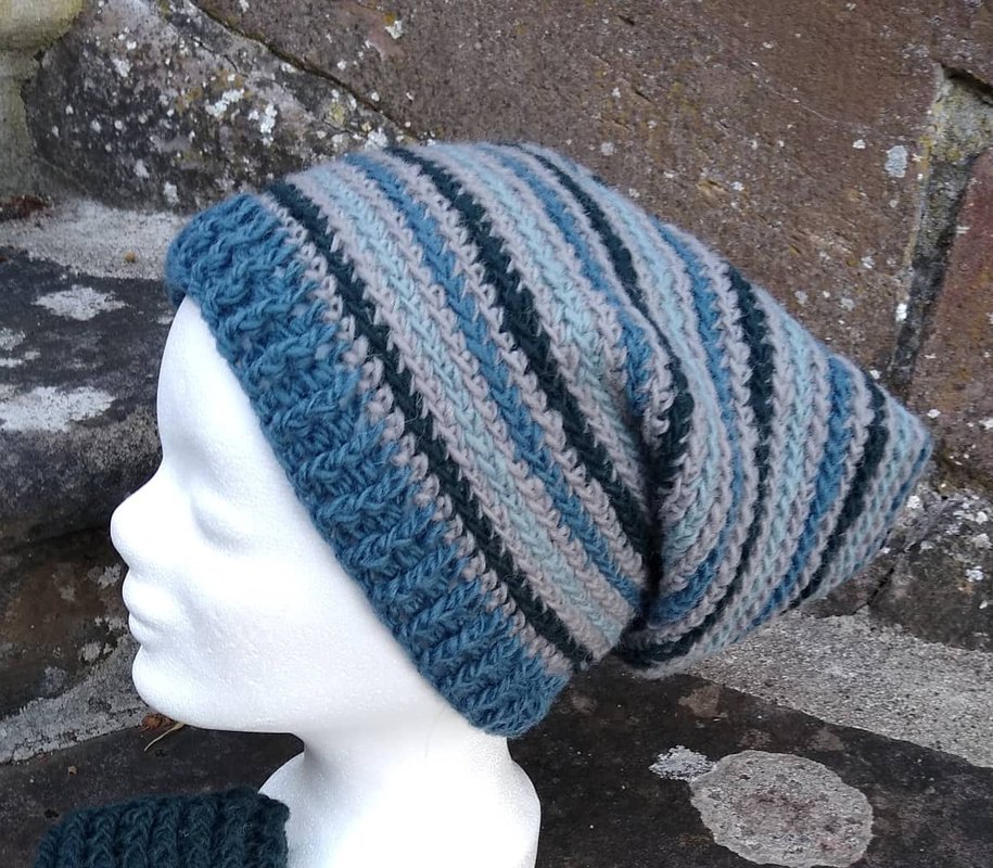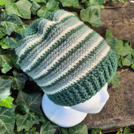 Ihr bekommt hier eine Häkelanleitung für eine Mütze oder Beanie. Das Muster ist super einfach und flott gehäkelt. Die bunten Streifen lassen viel Spielraum für eure Kreativität. Außerdem ist das Muster super geeignet um Wollreste zu verarbeiten.