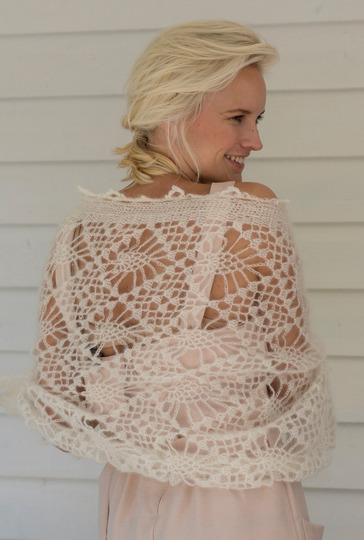 Einfach wunderschön! Ein Accessoire für alle Fälle. Egal zu welcher Jahreszeit, dieser Schal ist ganz Jahres tauglich. Ist es kalt, wird er doppelt um den Hals geschlungen, sind moderate Temperaturen kann er als Stola getragen werden. Gerade mal 100 g vom dem weichen Mohair-Seiden-Mischgarn benötigst du. Für das großflächige Ajourmuster gibt es eine zweifarbige Häkelschrift, sodass es einfacher ist, in der Reihe zu arbeiten. Es hat einen breiten Mustersatz, sodass drei Mustersätze mit Reihenbeginn und -Ende schon die Breite des Schals ergeben. Zur Abrundung wird zum Schluss um die gesamte Kante noch eine zarte Spitze gehäkelt. Du arbeitest mit Nadel Nr 4,5 und Garn von Austermann. Der fertige Schal hat eine Größe von 67 cm x 153 cm.