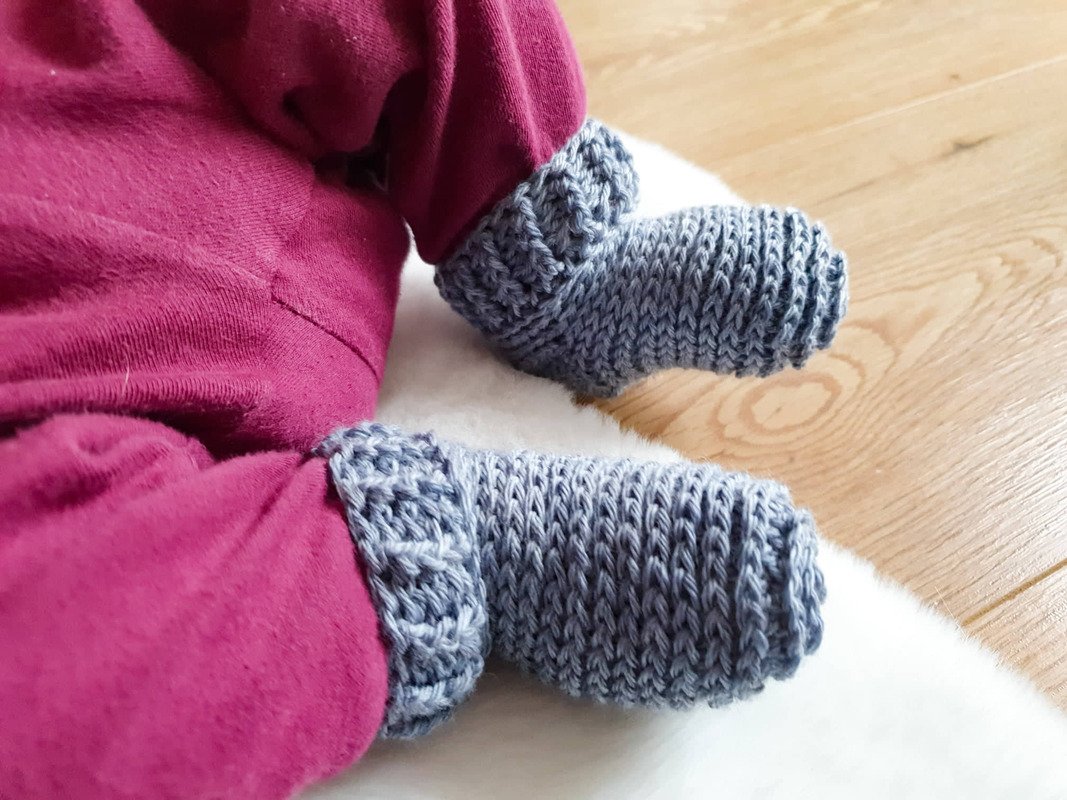 Bei allen Varianten hast du die Möglichkeit, den Strumpf nach oben hin individuell zu verlängern oder auch ein Umschlagbündchen zu häkeln. Bei kleinen ,,Strampelkindern" halten sie dann besser am Fuß :-).