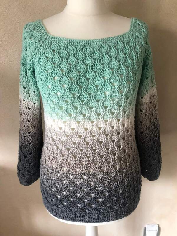 Der Pullover kann in jeder (Damen) Kleidergröße gehäkelt werden