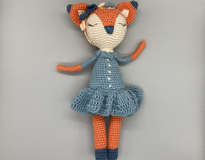 Diese Anleitung zeigt dir ausführlich, wie die Häkelpuppe "Finja" im Fuchsmotiv nachgehäkelt und zusammengesetzt wird.