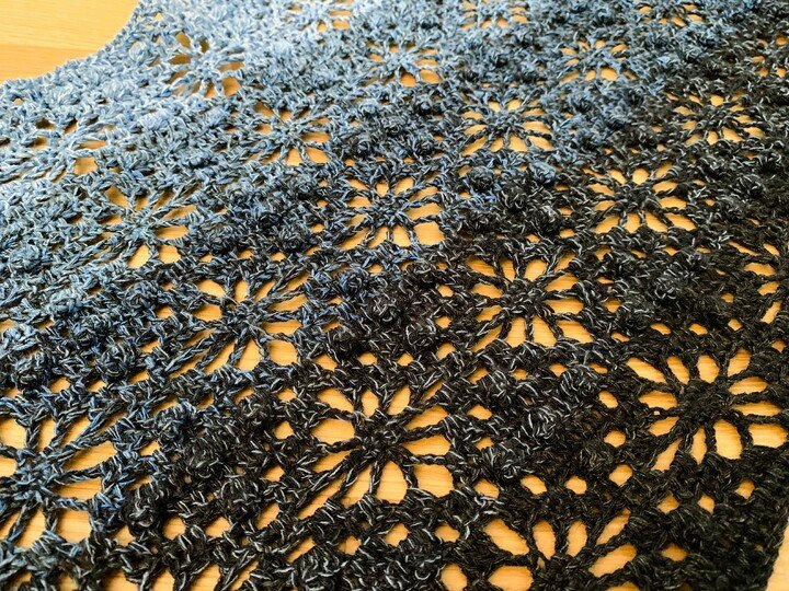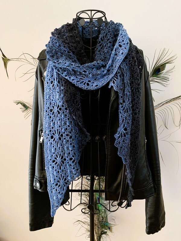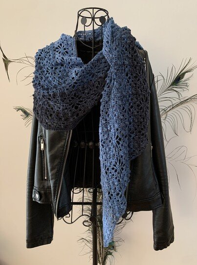 Die Stola kann in jeder beliebigen Größe gehäkelt werden, sowohl Länge als auch Breite sind anpassbar.