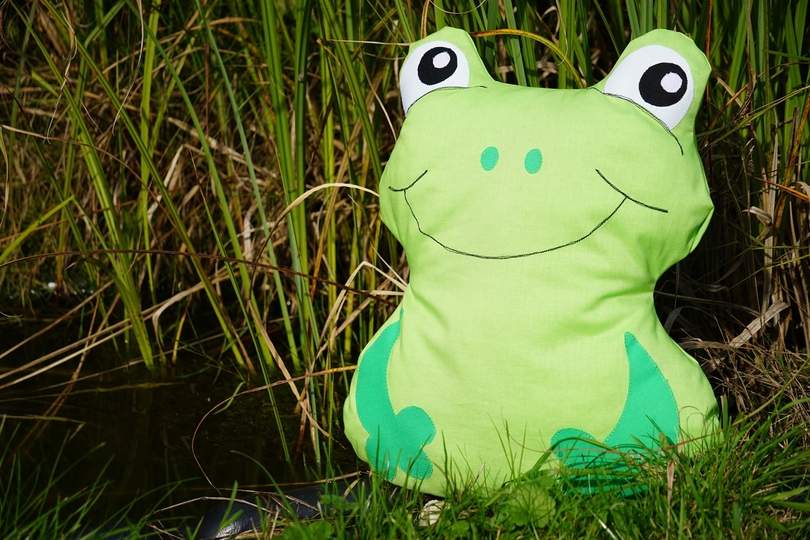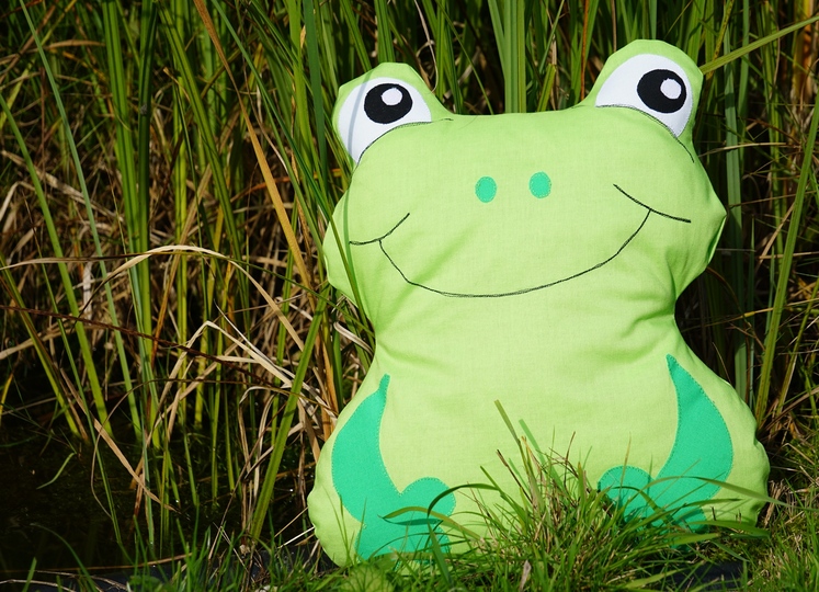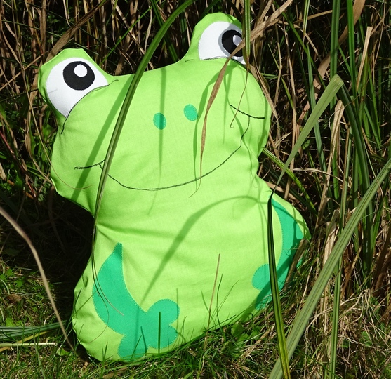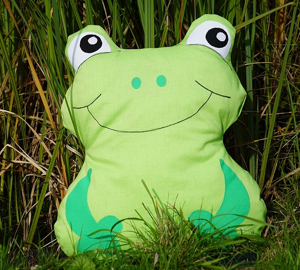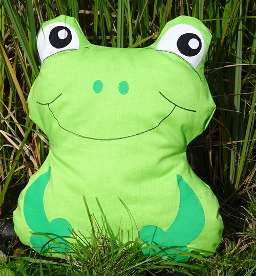 Dieses Kissen in Froschform in 3 Größen ist schnell genäht, ein wunderschönes Geburtstagsgeschenk zum Kuscheln und perfekt zur Restverwertung.