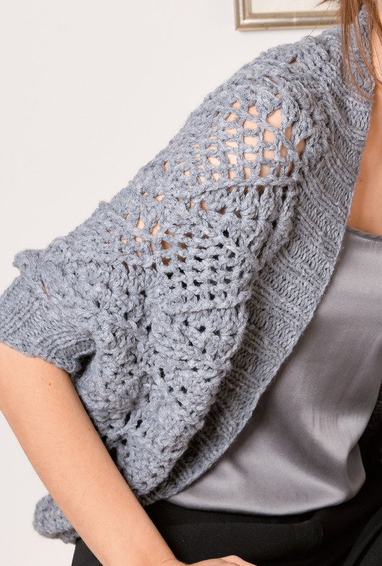 Unverzichtbar! Wer einmal die Vorzüge eines Seelenwärmers genossen hat, möchte darauf nicht mehr verzichten. Der ganz gerade Schnitt ist einfach zu arbeiten. Hier, in einem wunderschönen Ajour-Häkelmuster. Es besteht aus Stäbchen und Reliefstäbchen. Während sich das muschelartige Stäbchenmuster nach oben verbreitert, werden die von Reliefstäbchen eingerahmten Stäbchen Flächen immer schmaler. Diese zwei Mustermotive ordnest du immer versetzt an. Das wunderschöne, weiche Garn aus Wolle und Alpaca hat eine leicht flauschigen Oberfläsche. Da du es mit dicken Nadeln arbeitest, erscheint das Muster mit leichter Transparenz. Nachdem du die Seitennähte, bis auf die Armausschnitte, geschlossen hast, nimmst du Maschen aus der Außenkante und den Armausschnitten auf und strickst die breiter Rippenblende an. Du arbeitest mit Nadel Nr 7 und Nr 8 und einem Garn von Schulana. In der Anleitung findest du die Größen 36, 38, 40, 42, 44 und 46.