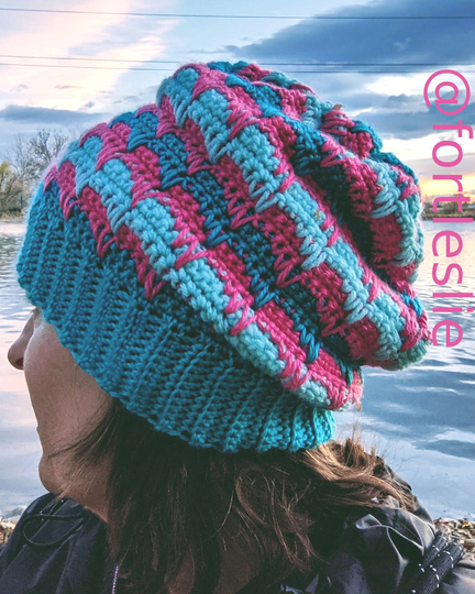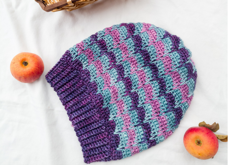 Bei dieser Mütze handelt es sich garantiert nicht um eine Sommermütze. Diese Beanie errinnert zurück an die warmen Sommertage. Eine meiner Häkeltesterinnen meinte, dass das Muster an geschmolzene Eiscreme errinnert. Ich mag diese Beschreibung sehr.