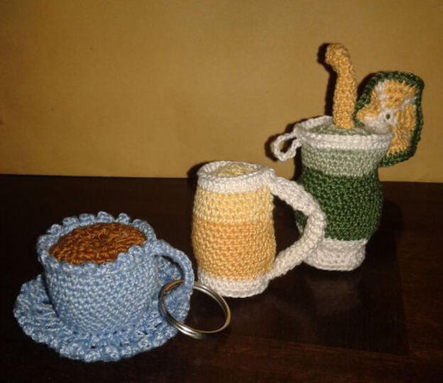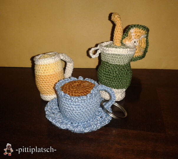 Smoothie, Bier und Kaffee als Schlüsselanhänger
