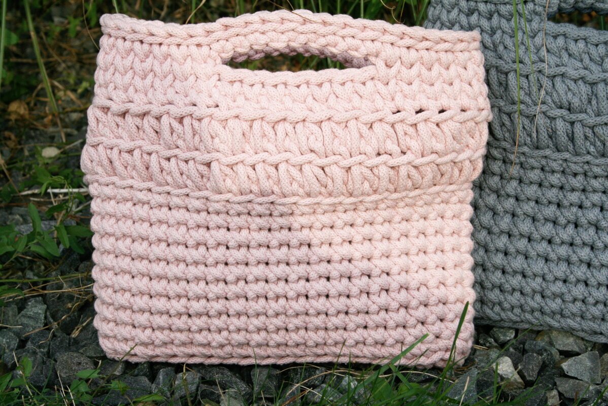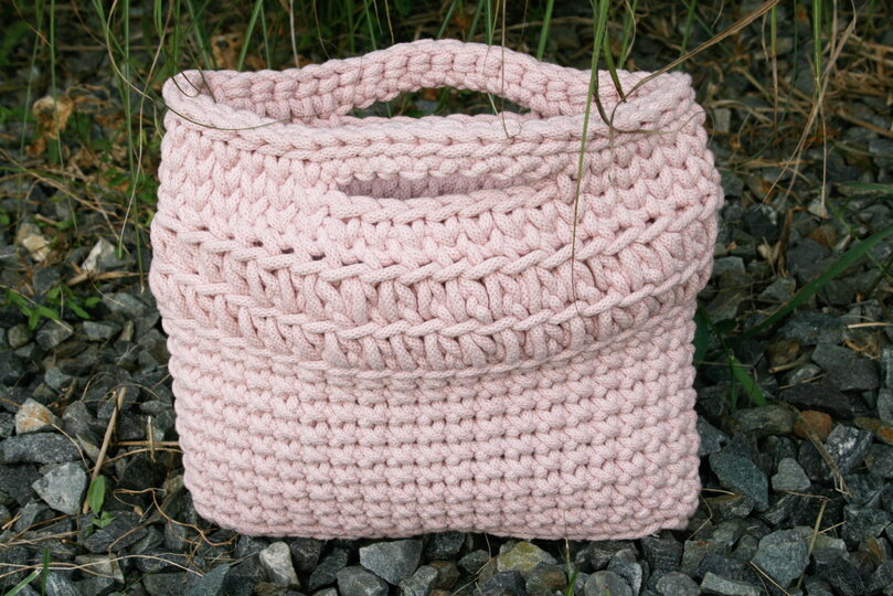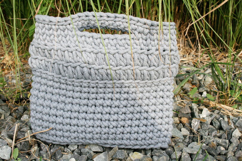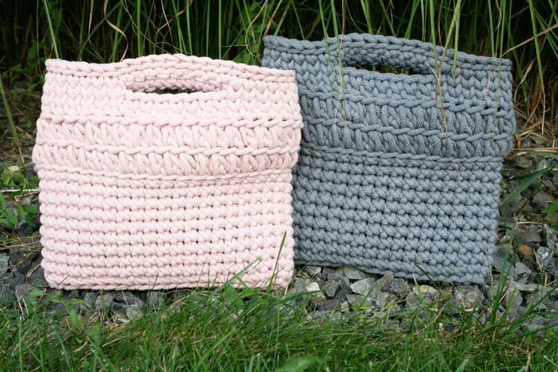 Du kannst natürlich auch eine vergleichbare Kordel oder T-Shirt-Garn verwenden. Je nach Dicke des verwendeten Materiales wird die Tasche größer oder kleiner.
