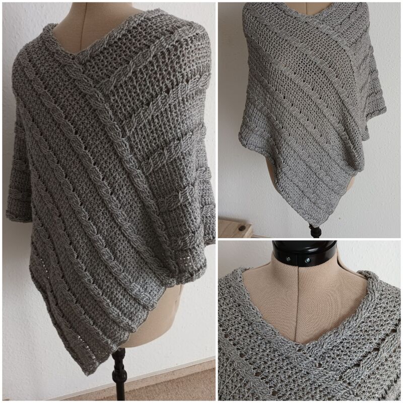 Könnte man den Poncho auch mit Farbverlaufsgarn häkeln.