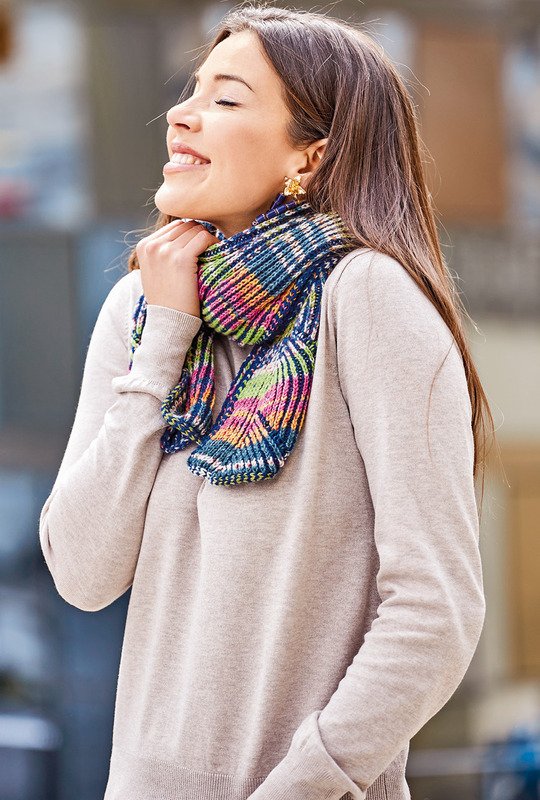 Für den Schal:- Opal "Pullover- und Sockenwolle 4-fach" (75 % Schurwolle sw, 25 % Polyamid, LL 425 m/100 g)- 200 g aus der Kollektion in Variation nach Hundertwasser (Fb 2107) "Der Weg von dir zu mir zurück"
