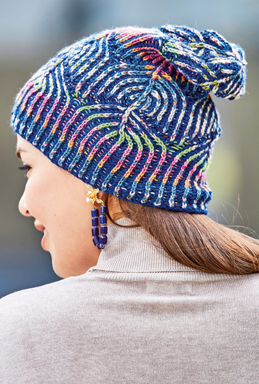 Außergewöhnlich und für versierte StrickerInnen ein Leckerbissen ist dieses Set aus Mütze und Schal im Briochemuster. Es macht Spaß, dieses Patentmuster zu stricken, obwohl es die volle Aufmerksamkeit erfordert, doch dank genauer Anleitung kein Problem. Dieses Muster ist sowohl auf der Vorder- als auch von der Rückseite schön anzusehen. Die Mütze ist etwas länger gearbeitet, ganz so wie es sich für eine Beanie gehört. Die Mütze in Einheitsgröße und der Schal mit 28 x 192 cm gibt es als Anleitung zum Download.
