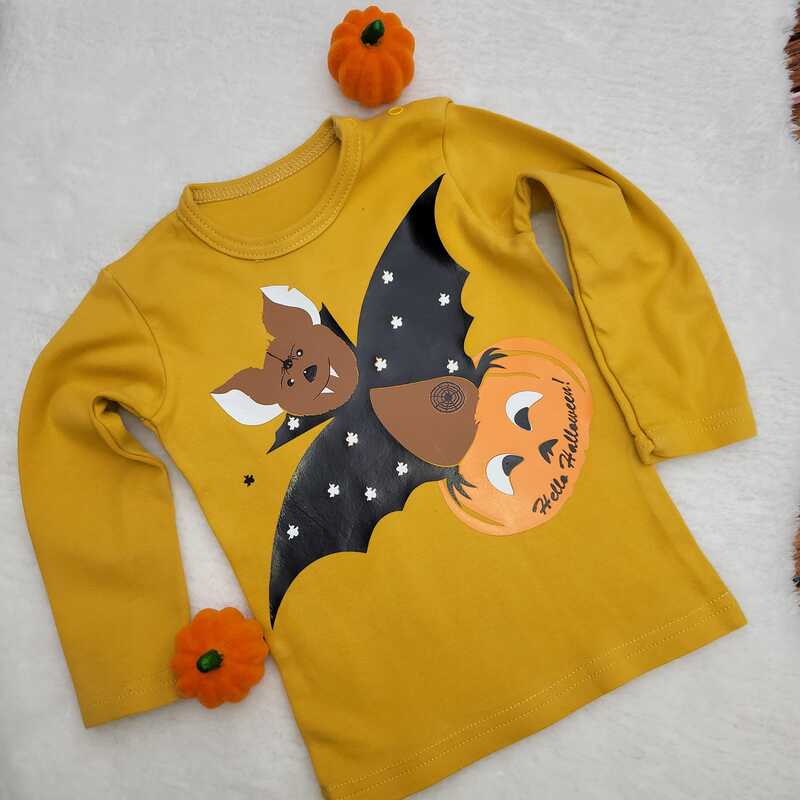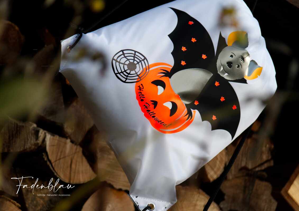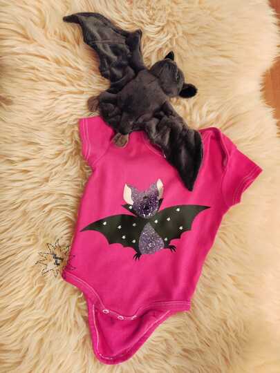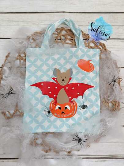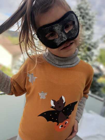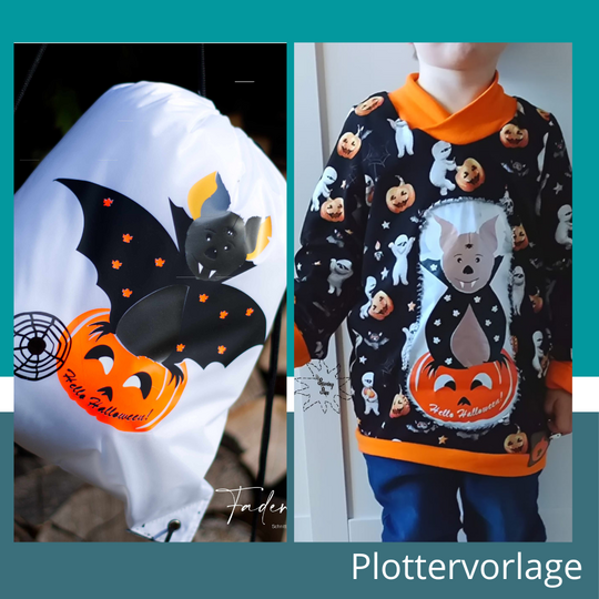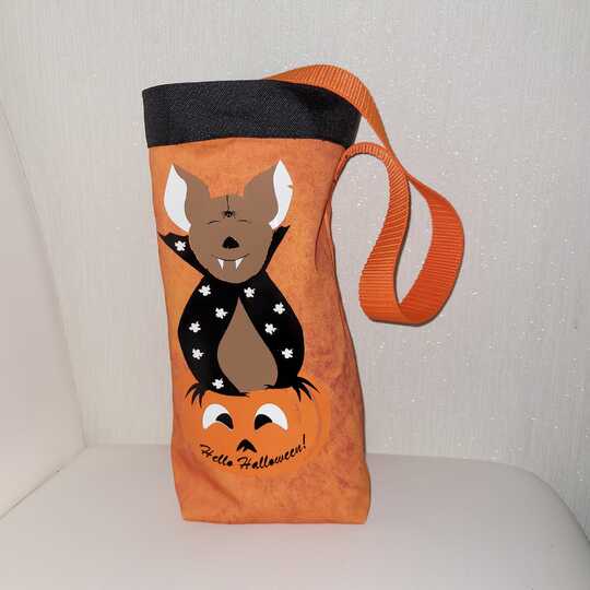 Die kleine Fledermaus und ihr Kürbis sind die perfekten Begleiter auf der Süßigkeitentour.