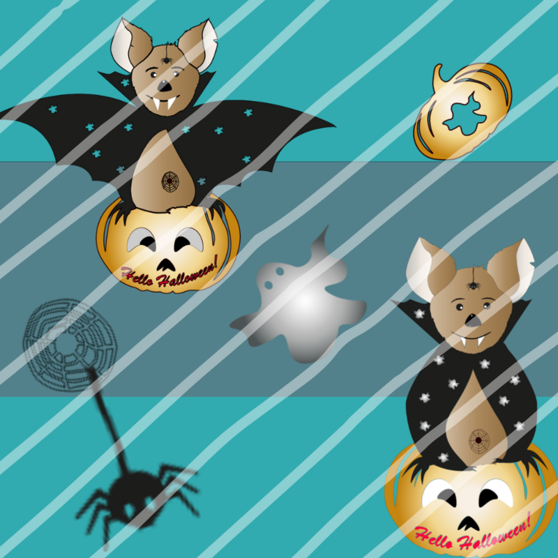 Die Datei enthalt 2 verschiedene Fledermausvarianten mit vielen kleinen Details, wie Gespenster, Kürbisse, Spinne und Spinnennetz.