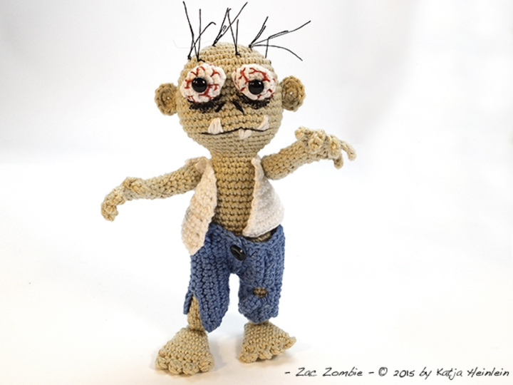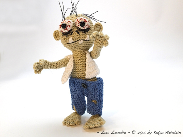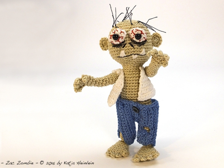 Zombie Zac, leicht mitgenommen, wandert etwas planlos durch die Welt. Er macht sich richtig gut als Deko oder als Geschenk für Gruselfans bzw. Halloweenbegeisterte.