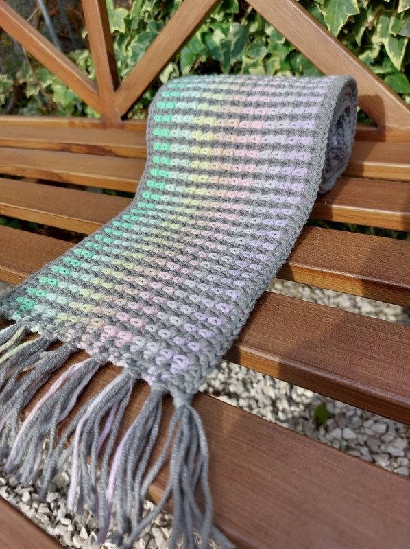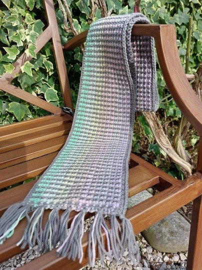Als Schal, Tuch oder jedes in Runden gearbeitete Häkelstück wie Loops, Stulpen oder Stirnbänder.