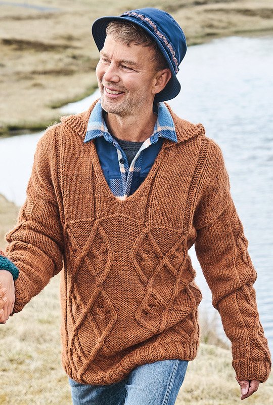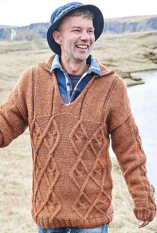 Hoodies, also Pullis mit Kapuze, sind auch für Männer ein absolutes Muss. Dieses sportlich Modell entsteht aus einem weichen Herbstgarn, das es nicht nur in Terrameliert gibt, sondern auch noch in fünf anderen tollen Farben. Und in allen Nuancen kommen die plastischen Rautenstrukturen, die sich am unteren Teil des Pullis in Szene setzen, eindrucksvoll zur Geltung. Der obere Bereich endet mit breiten Rechts-Links-Rippen. Bei den Ärmeln wird nur in der Mitte das Rautenmuster wieder aufgegriffen.