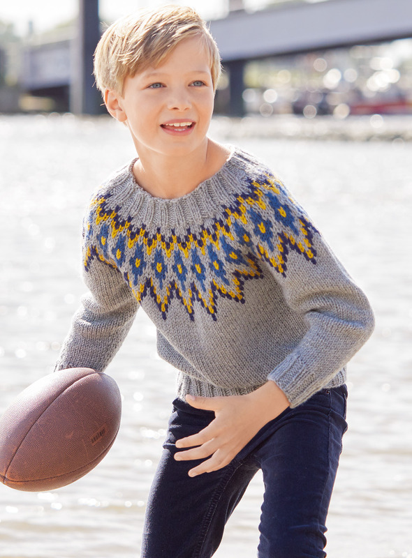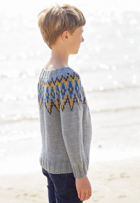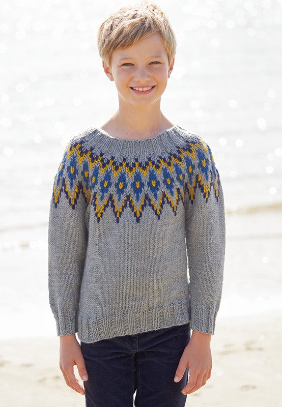 Mit diesem Pullover aus reiner Schurwolle mit Rundpasse kann man „ihn“ garantiert glücklich machen! Er ist super bequem, macht alles mit und gibt sich ebenso strapazierfähig wie kuschelig! Gestrickt wird der Pullover bis zum Passenbeginn in Runden. Danach werden alle Teile gemeinsam auf die Nadel genommen und der Musterspaß kann beginnen. Das Jacquardmuster ist nicht schwierig und zudem in einer klaren und übersichtlichen Strickschrift dargestellt. Besonders praktisch: bei dieser Strickweise müssen zum Schluss nur noch die Ärmelnähte geschlossen werden. Übrigens eignet sich dieses Modell natürlich auch sehr gut für kleine Mädchen.