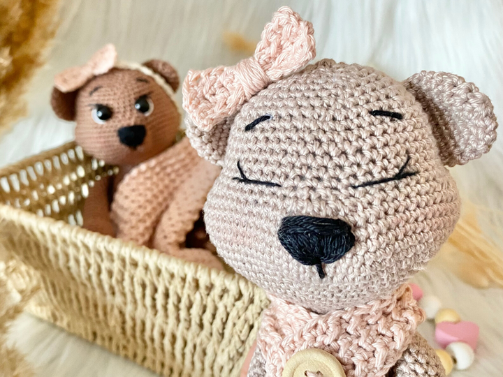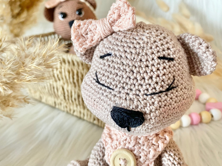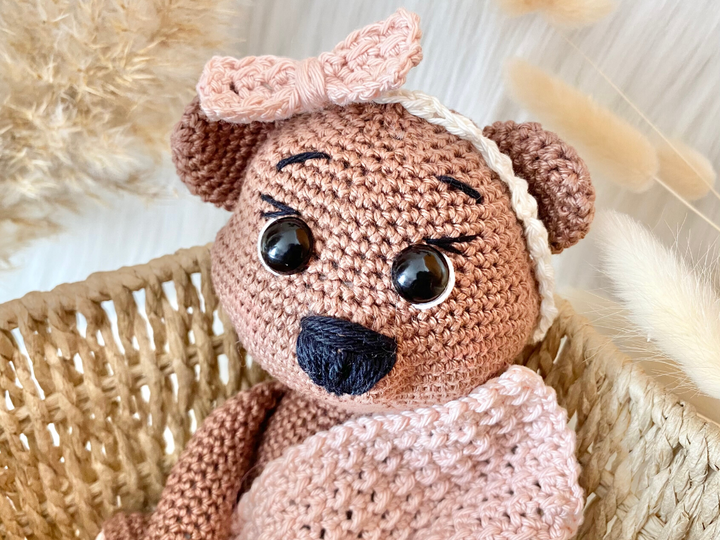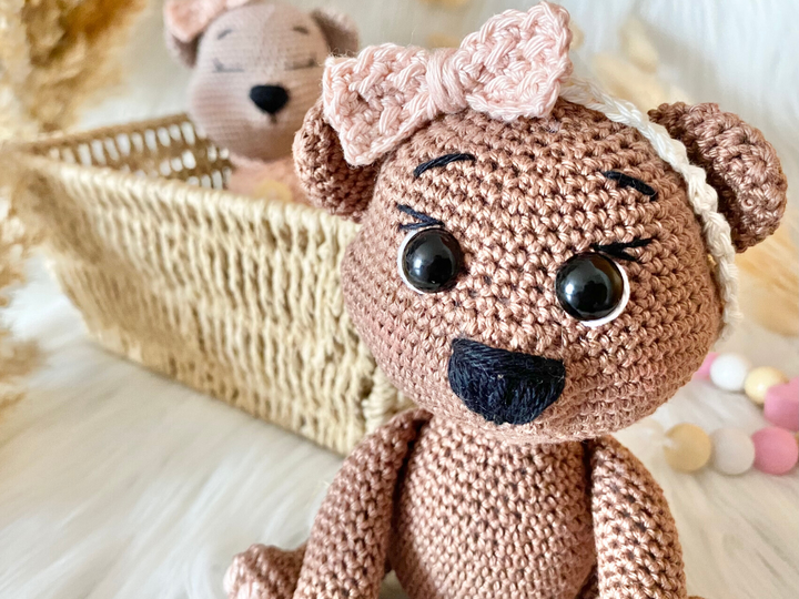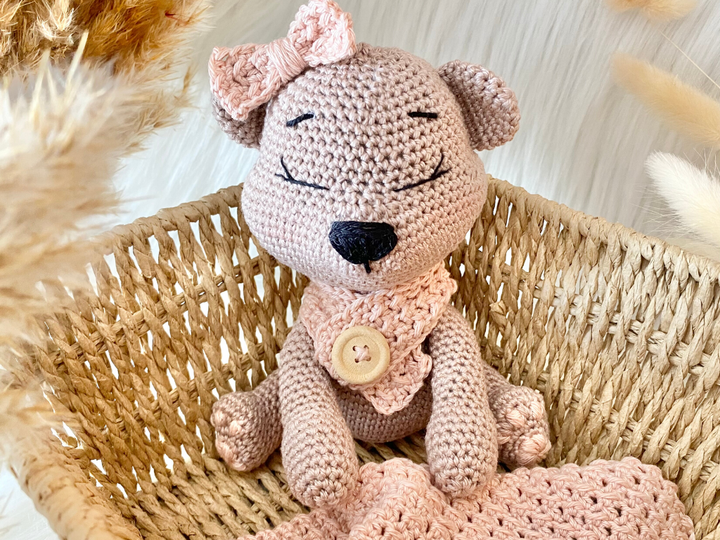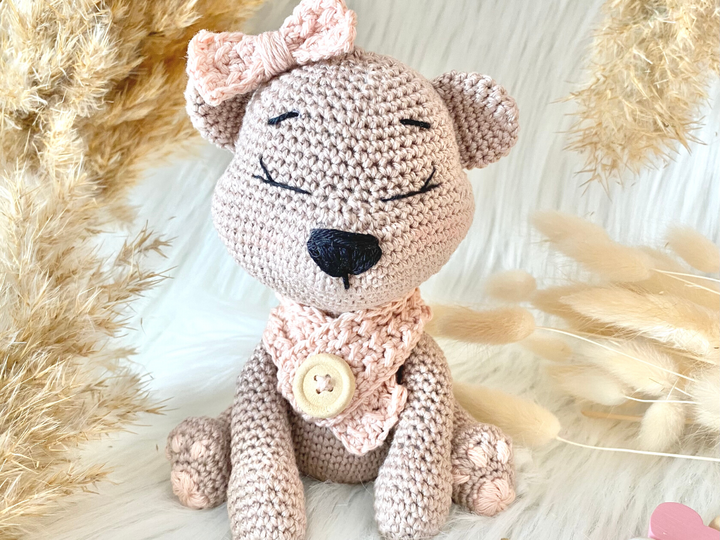 Bärchen Nayla ist ein treuer Begleiter zum Kuscheln und Spielen. Mit ihrem sanften Ausdruck und dem süßen Halstuch ist sie ideal für Kinderhände und ein wunderschönes Geschenk zur Geburt, Taufe oder einfach für zwischendurch. Die Anleitung ist leicht verständlich und auch für geübte Anfänger geeignet.