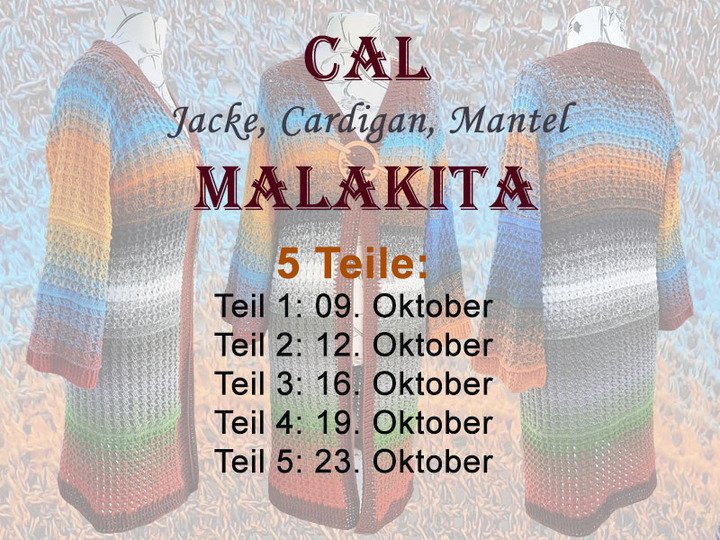 Malakita wird von oben nach unten in Reihen gehäkelt. Der Beginn ist für alle Größen gleich, je nachdem welche Größe gehäkelt wird, werden die Zunahmen entsprechend weiter geführt. Malakita hat einen V-Ausschnitt, der nicht zu tief ist.