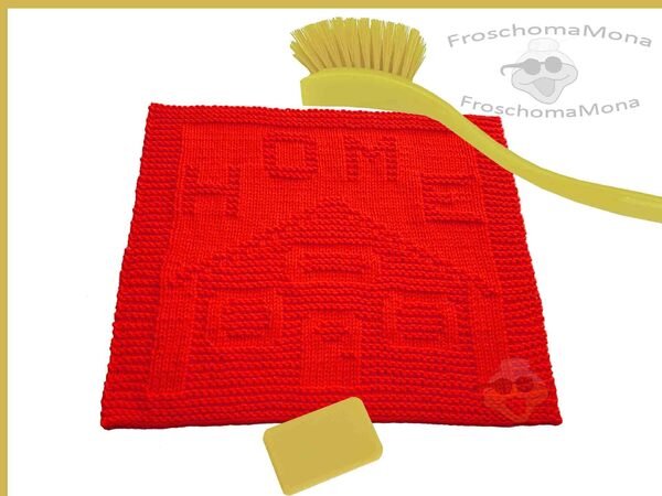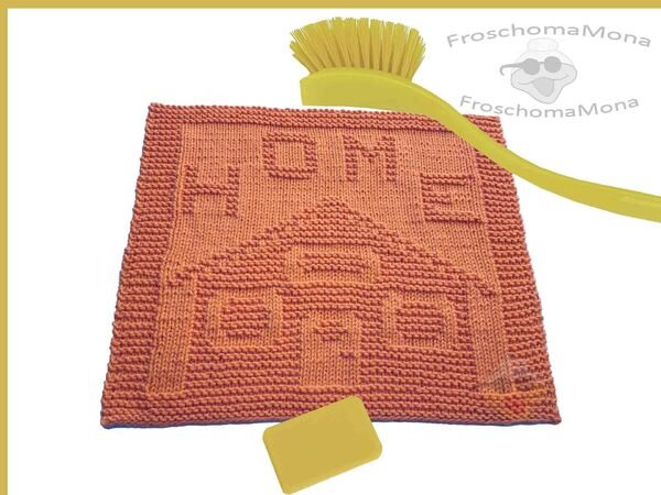 mit einem Haus Motiv und dem Schriftzug HOME stricken kannst.