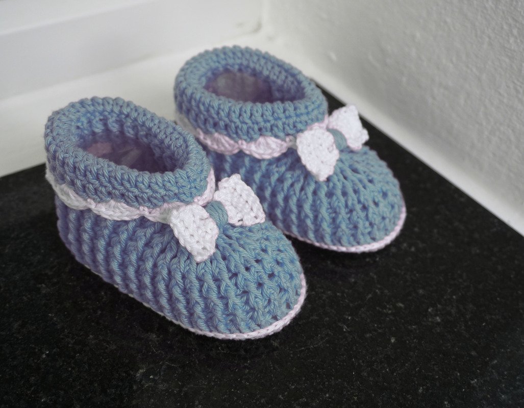 In der hier angebotenen PDF Häkelanleitung wird die Fertigung der Babyschühchen in deutscher Sprache und mit zahlreichen Bildern auf insgesamt 11 Seiten beschrieben.
