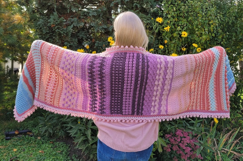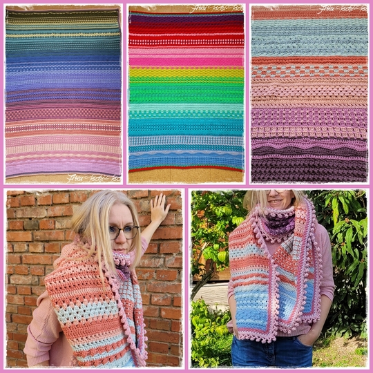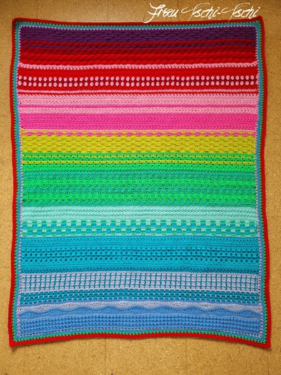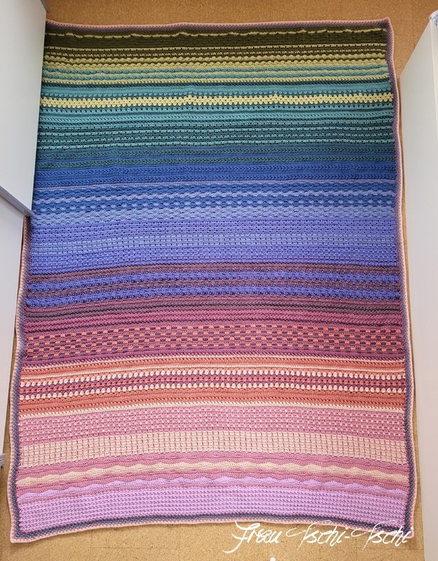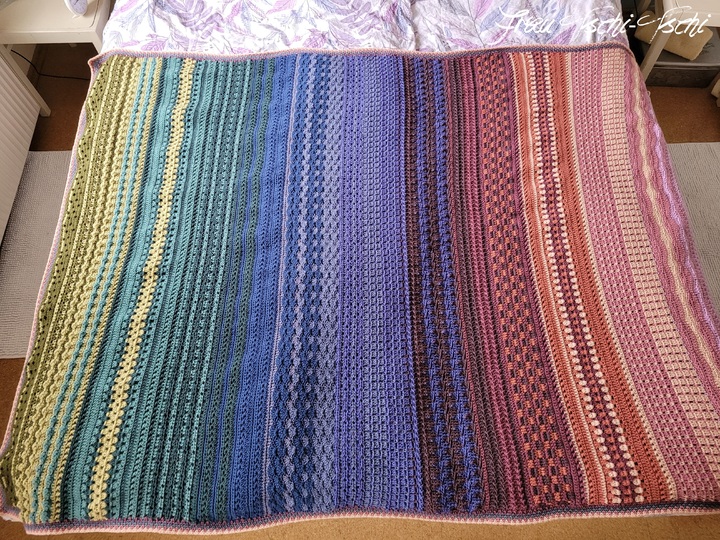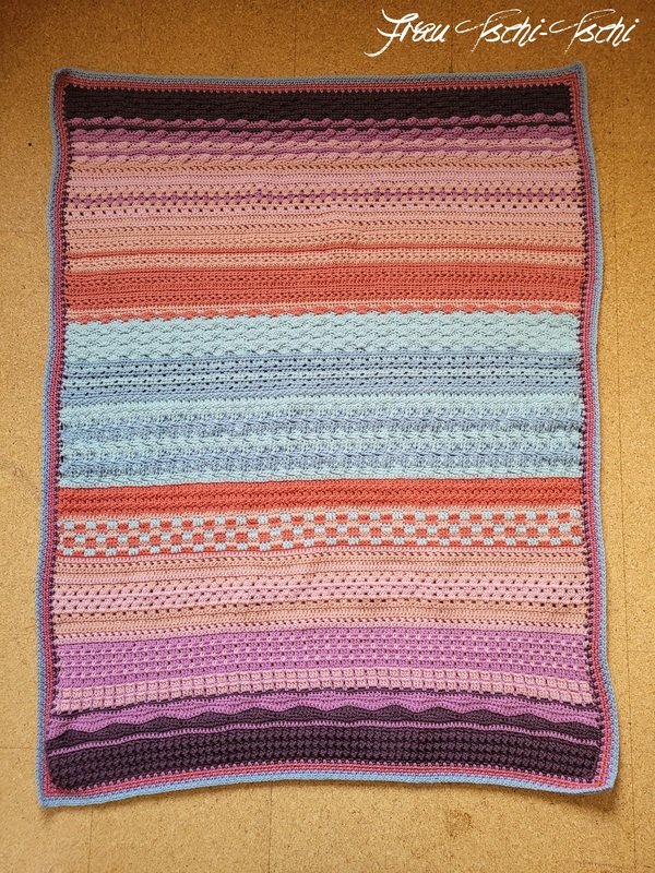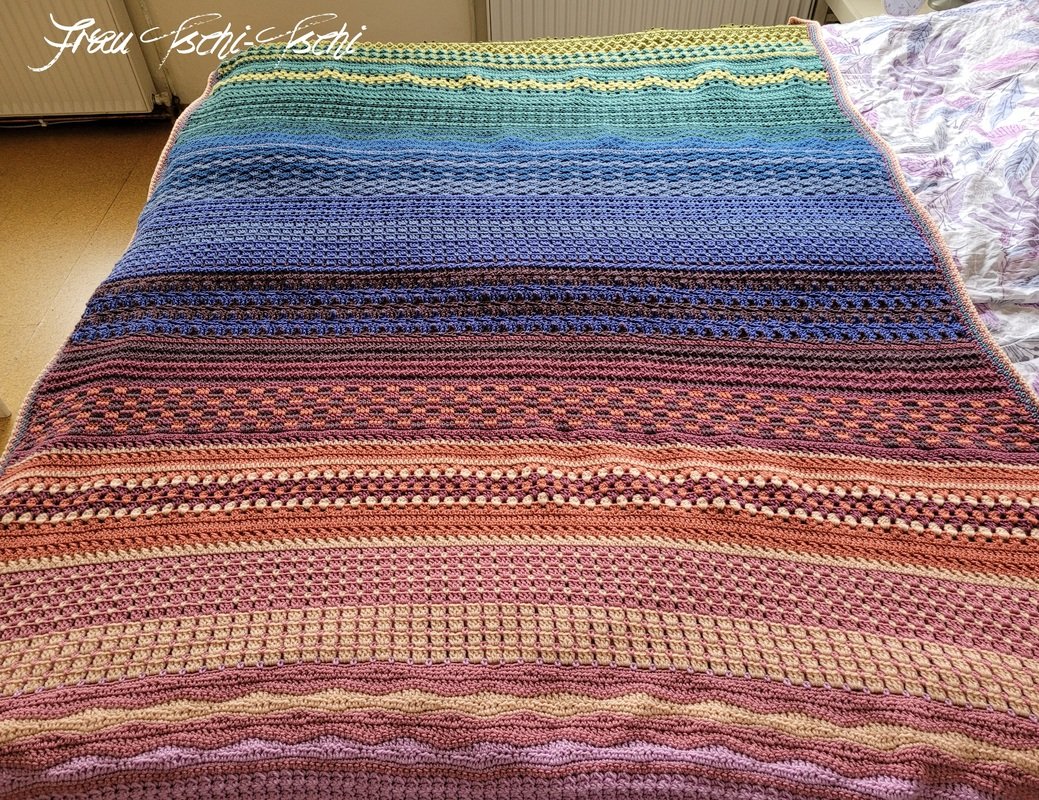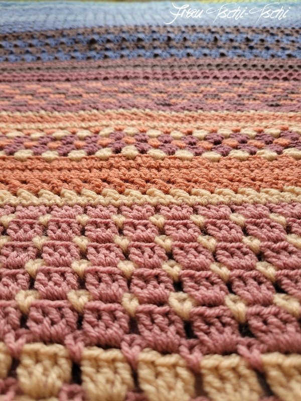 Ihr häkelt eine wunderschöne Decke mit vielen verschiedenen Mustern.