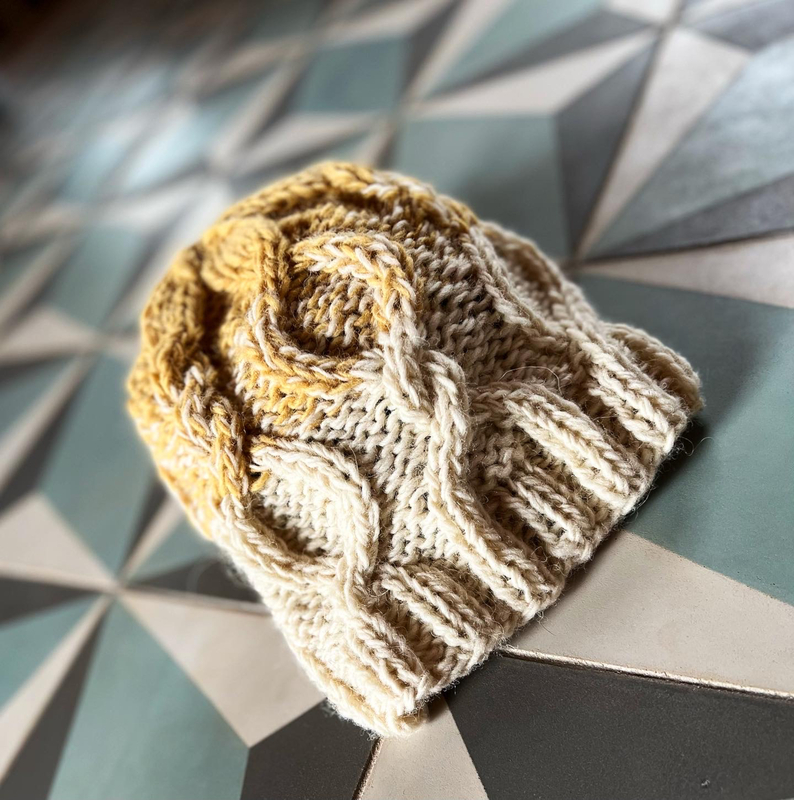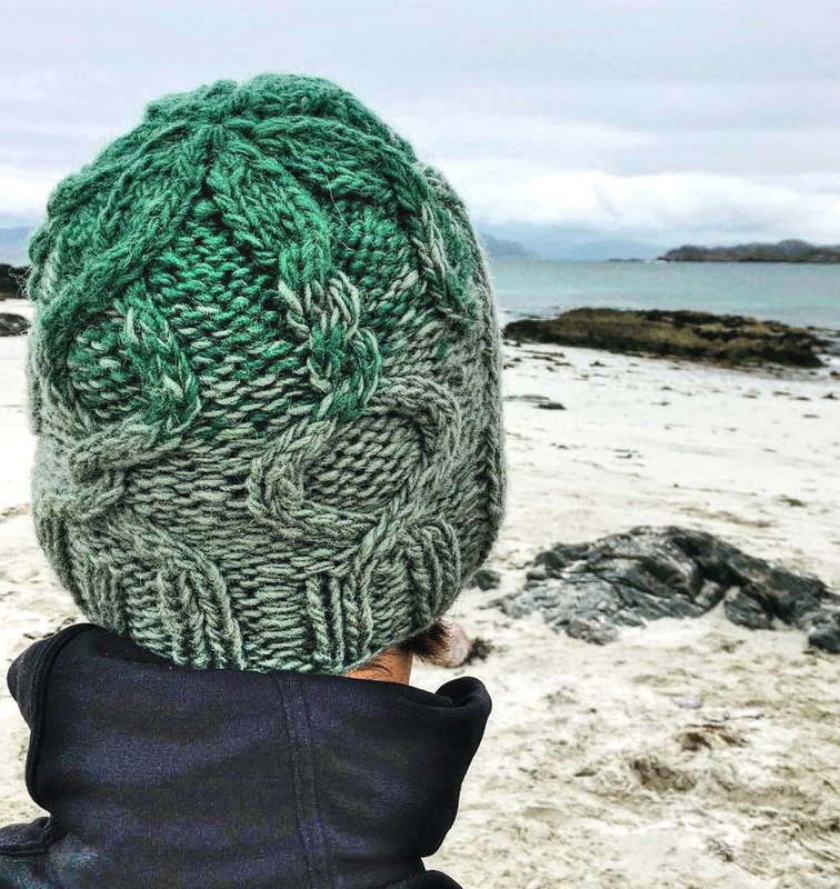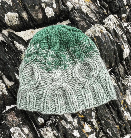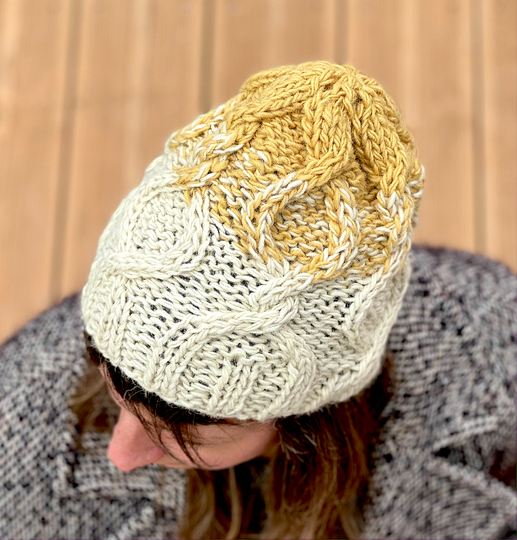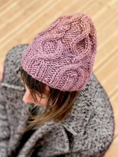 Was die Mütze IRIA HAT ausmacht, ist ihr Farbenspiel - und natürlich das Zopfmuster. Das macht sie zum Blickfang.