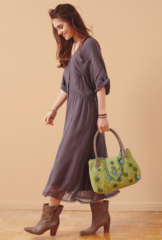 Unverzichtbar ist dieser attraktive, gehäkelte Schopper. Mit einer Größe von 45 x 30 cm lässt er sich noch gut in der Hand oder über der Schulter tragen und hat genügend Platz für schöne Dinge. Die breite Lasche verschließt die Tasche sicher. Die Ornamente sind in verschiedenen Farben und Größen gehäkelt und werden entweder nach Abbildung oder Fantasie aufgenäht. Das Grundmuster, bestehend aus festen Maschen gibt der Tasche eine gute Stabilität. Das Garn dafür gibt es bei Lana Grossa und es wird mit Nadelstärkw 4 verarbeitet.