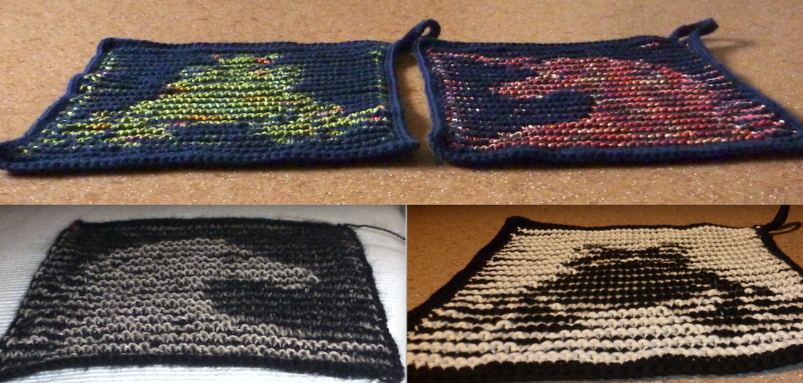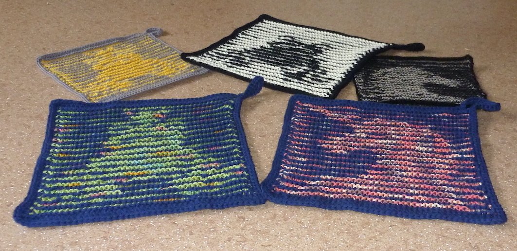 Einen Mann kann man sich nicht backen - aber einen Froschkönig stricken! Oder soll’s lieber ein Einhorn sein? Den Frosch könnt ihr auch ohne Krone stricken, das Einhorn auch ohne Horn als Pferd - jeweils wahlweise als Topf-, Spül- oder auch Waschlappen. Prima sieht z.B. auch ein Duo aus demselben Motiv aus mit gegensätzlicher Farbgebung, oder auch einmal gespiegelt.
