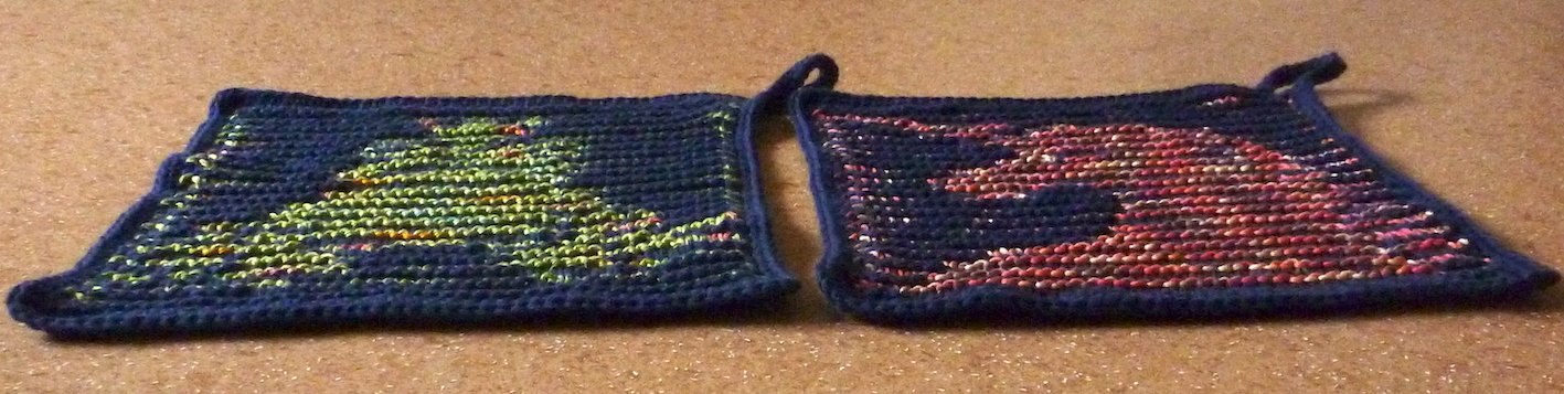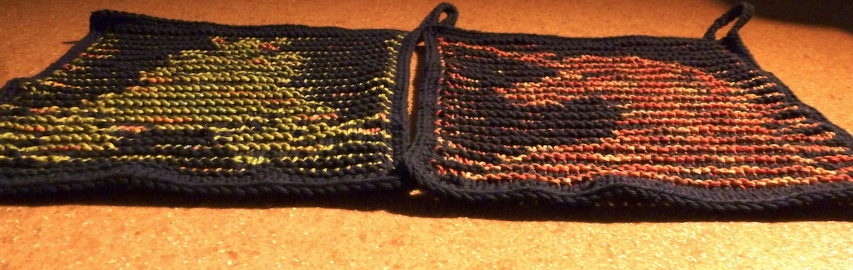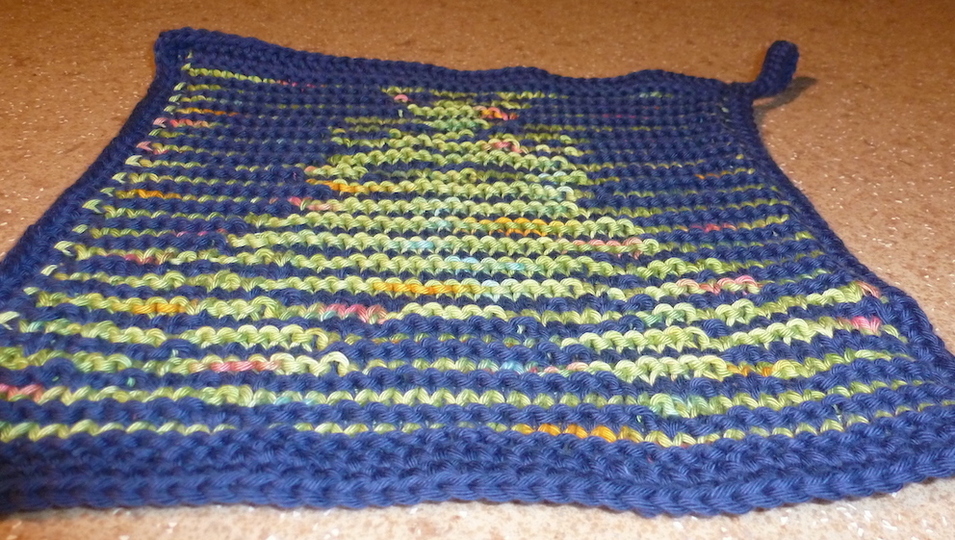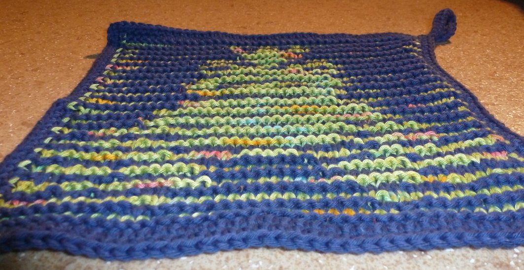 Fertige Topflappen aus 8/8-Garn sind bei mir ca. 27x27 cm groß, Spül- oder Waschlappen aus 8/4-Garn ca. 21x21 cm.