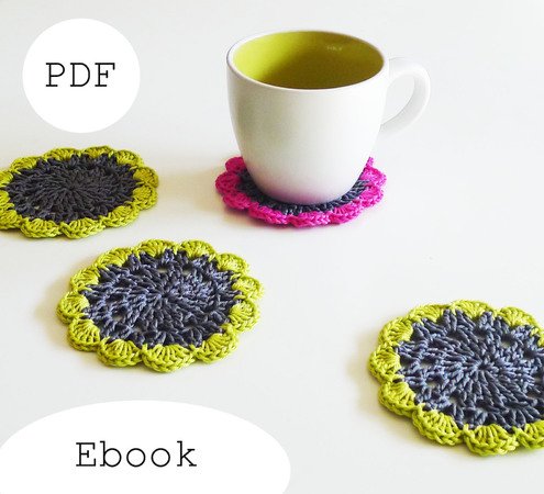 In diesem Ebook erkläre ich Dir, wie Du ganz einfach süße Untersetzer für Deine Tassen oder Gläser häkelst.