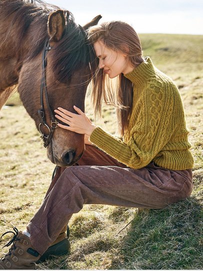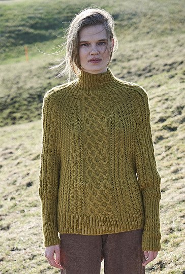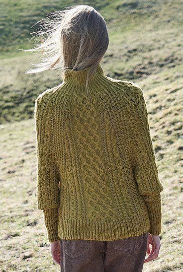 Warmes Senfgelb gibt dem Pulli aus exklusiver Alpakawolle den herbstlichen Flow. Aber der Wow-Effekt liegt in der Schnittführung: Du beginnst unten am Saum und strickst das Vorder- und Rückenteil in Runden, bis zum Beginn der Raglanschrägungen. Danach werden die Ärmel genauso gearbeitet. Dann alle Maschen auf die Nadel nehmen und die Passe mit den Raglanschrägungen ebenso in Runden stricken. Das Finish bildet der hohe Stehkragen. Nicht zu vergessen: die tollen Zopfmuster, bei denen dir die übersichtlichen Strickschriften zur Seite stehen.