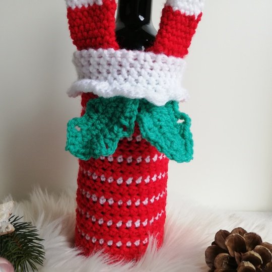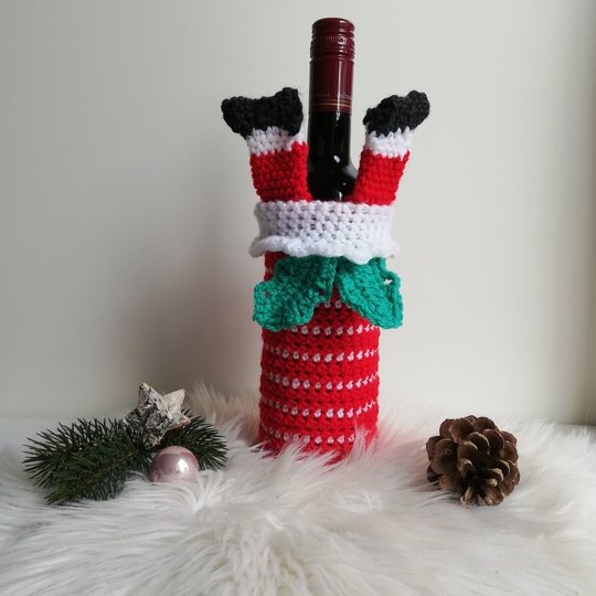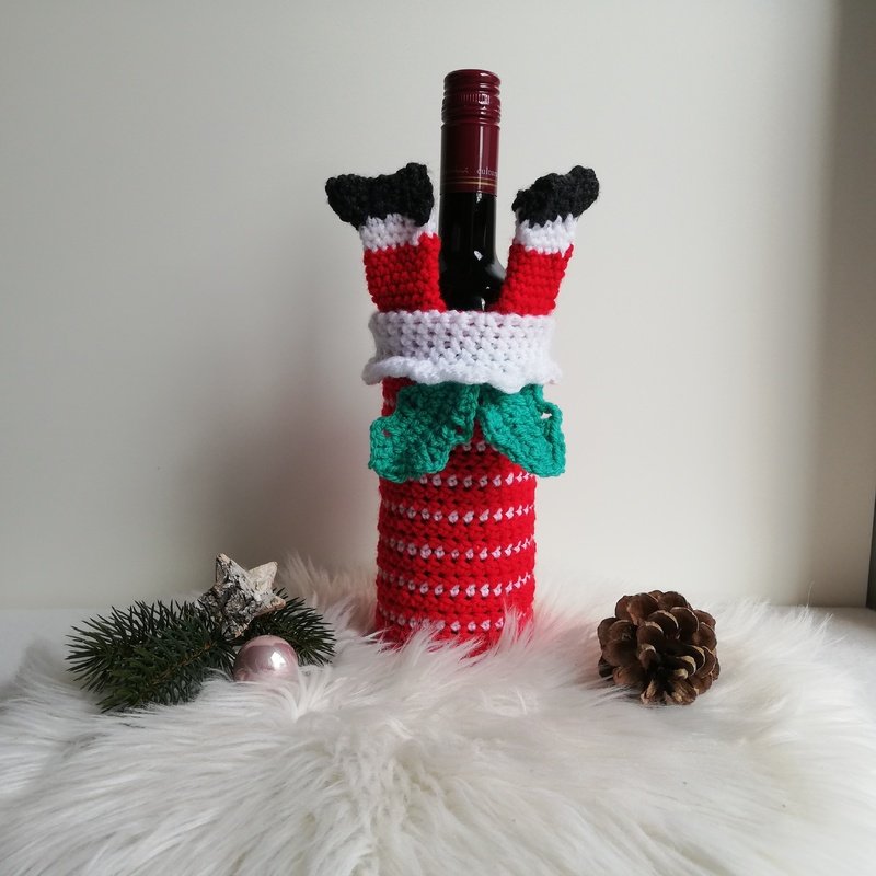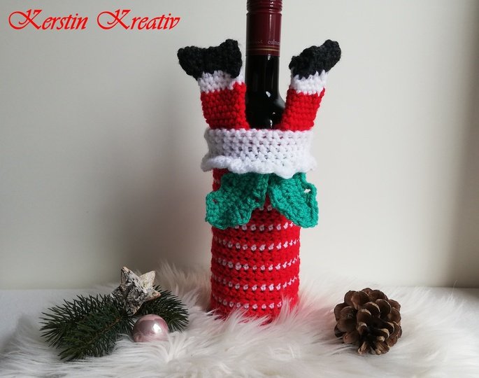 Diese süße Flaschentasche kannst du als Weihnachtsgeschenk nutzen, um eine Flasche Wein zu überreichen. Gerade diese kleine Geste kommt zur Weihnachtszeit immer gut an und sorft für freudige Gesichert.
