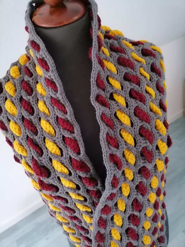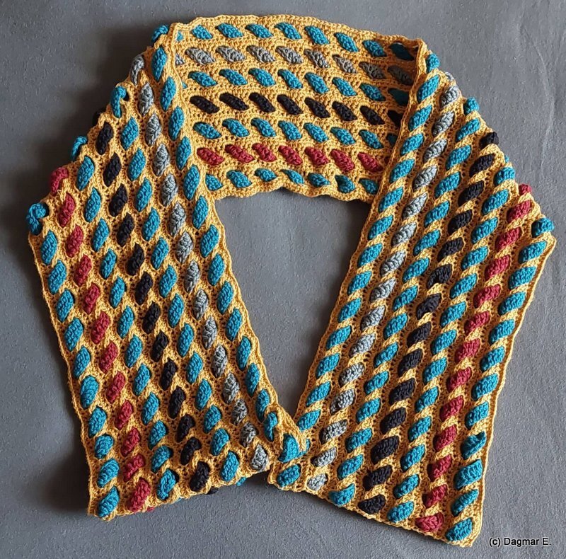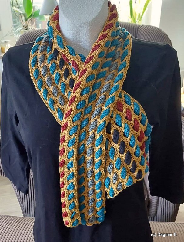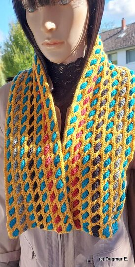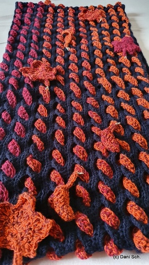 Gearbeitet habe ich mit einer NS 3 mm und dies ergab eine Größe von 120 x 20 cm