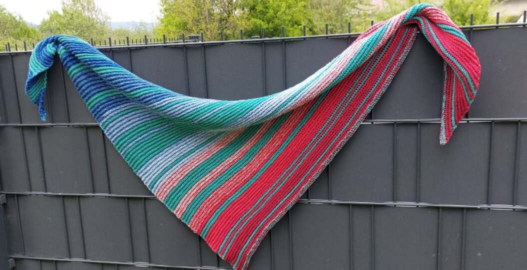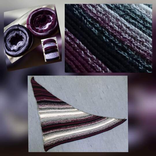 Gearbeitet wird es aus zwei Bobbeln (Farbverlaufsgarn) und