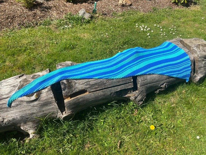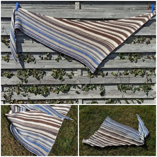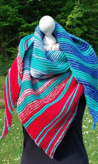 Die Tücher auf dem Titelbild wurden mit Farbverlaufsgarnen (Baumwolle Polyester Gemisch) unterschiedlicher Stärke und verschiedenen Häkelnadelstärken gearbeitet.