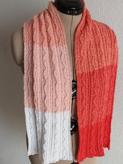 Der Schal ist 25cm breit und die Länge ab 140cm