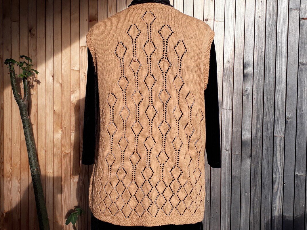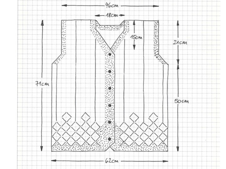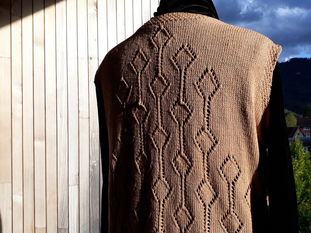 Wenn Du bereits mindestens ein Stück mit Lochmuster gestrickt hast, wird Dir diese Anleitung leicht von der Hand gehen. Die Weste wird in einem Stück gestrickt, es sind nur mehr die Schulternähte zu schliessen.