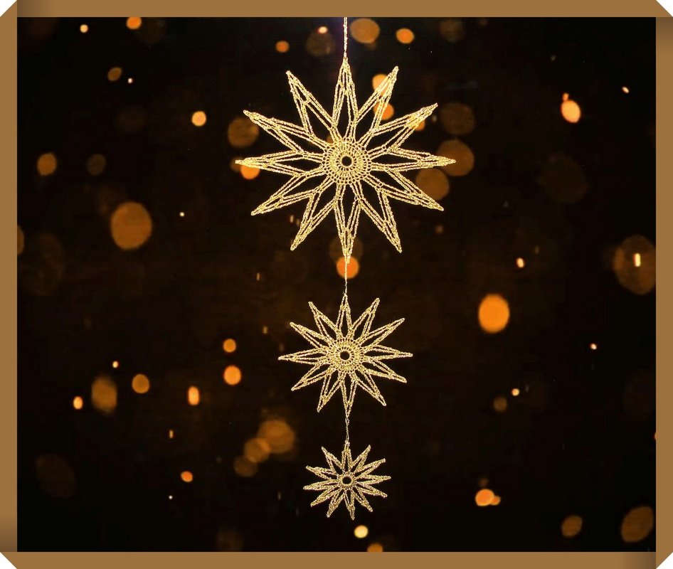 Fensterdekoration 3 verschiedene Modelle und Größen 22cm 15cm und 10cm Schneeflocken, Häkelsterne, für weihnachtliche Dekorationen.