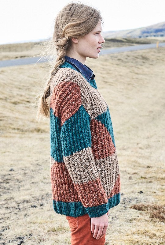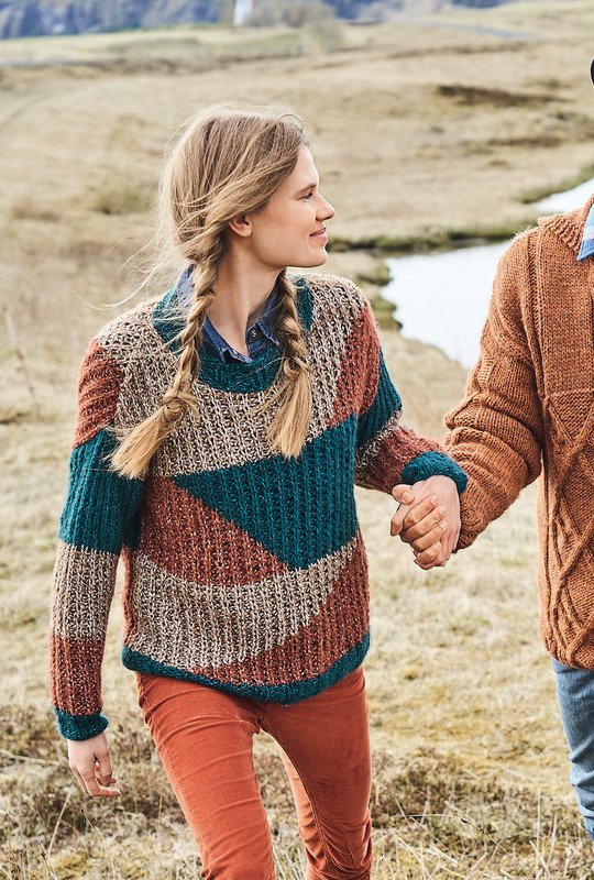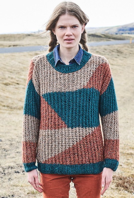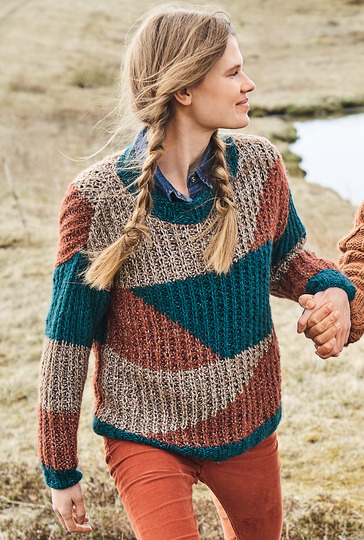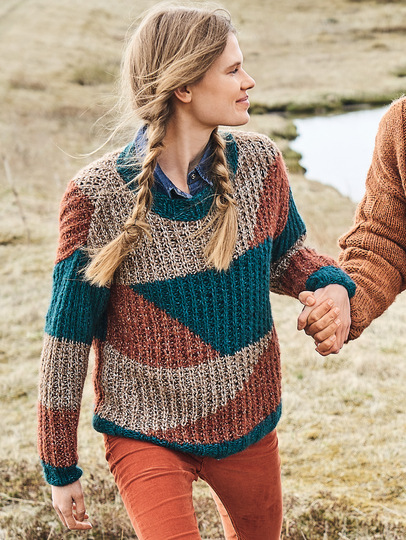 Mit separaten Knäueln arbeiten und die Fäden auf der Arbeitsrückseite verkreuzen – die Intarsientechnik strickt sich mit etwas Übung wie von selbst. Sie ist die Grundlage für diesen sportlichen Pullover, bei dem sich die versetzten Farbflächen in Petrol, Rost und Beige zu einem tollen Design zusammenfügen. Zusätzliche Spannung entsteht durch das leichte Tweedgarn und durch das Rippenmuster, bei dem patente Maschen im Mittelpunkt stehen.