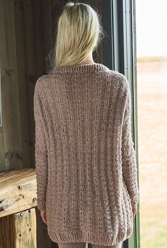 Altrosa, Beige und Taupe werden bei dem gemütlichen Longpulli zusammen verstrickt und lassen den dezenten Melange-Effekt entstehen. Das schlichte, leicht strukturierte Grundmuster sorgt für die spannende Optik, die mit Nadel 8 ganz schnell und easy von der Hand geht. Die elastischen Rippenbündchen entstehen mit dünnerer Nadel, sodass die Formstabilität gewährleistet ist. Dies gilt auch für die V-Ausschnittblende, die zum Schluss zur Hälfte nach innen umgeschlagen und angenäht wird.